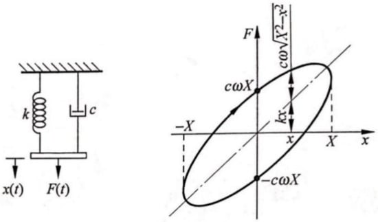 The shear spring is made of rubber, and the system of which it is a part can be understood as a parallel system of a spring and viscous damper [26], as shown in Figure 6.