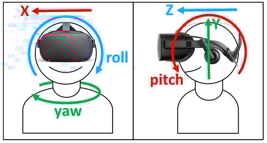 Regarding head movements, Hachaj et al. [14] studied the recognition and classification of seven head gestures, which included clockwise/counterclockwise rotation and nodding, by using machine learning techniques. In addition, previous studies have investigated controlling a robot [15] and a wheelchair by the movement of the head for people with tetraplegia [16,17,18]. Most of the studies adopting head movement as an interface technique have been undertaken in real-world situations, but we believe that head movement is applicable to VR.