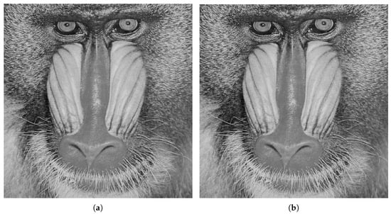 The quantitative results obtained for different data hiding technique using Mandrill are listed in Table 4. The results show that the proposed technique also has a of for Mandrill images. The of the proposed technique is higher than most of the methods except for Wang et al. [] and Lee and Chen [] method. The two techniques have higher than the proposed technique. The proposed technique has higher than or comparable with the majority of the given technique.
