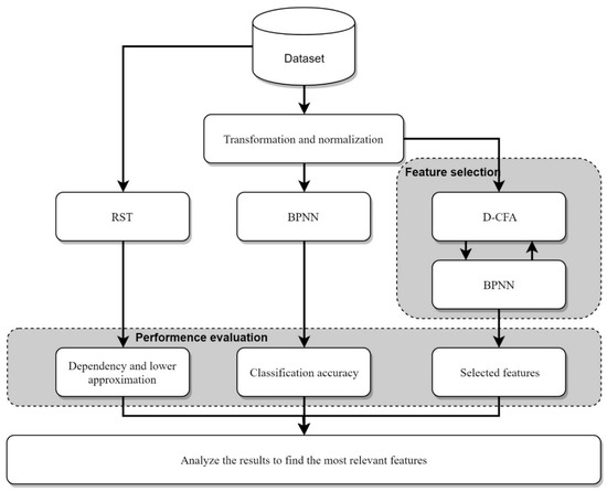 The methodology of using the rough-set theory (RST), back-propagation neural network (BPNN), and discrete cuttlefish algorithm (D-CFA) to analyze the datasets.