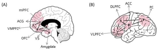 - Boes, A.D.; Bechara, A.; Tranel, D.; Anderson, S.W.; Richman, L.; Nopoulos, P. Right ventromedial prefrontal cortex: A neuroanatomical correlate of impulse control in boys. Soc. Cogn. Affect. Neurosci. 2009, 4, 1–9. [Google Scholar] [CrossRef]