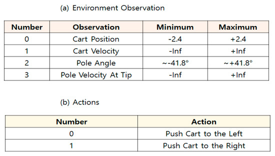 In Cart-Pole [27], there are four observations and two discrete actions, as shown in Figure 7.