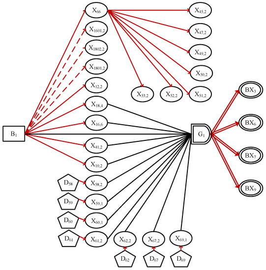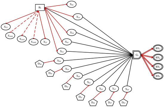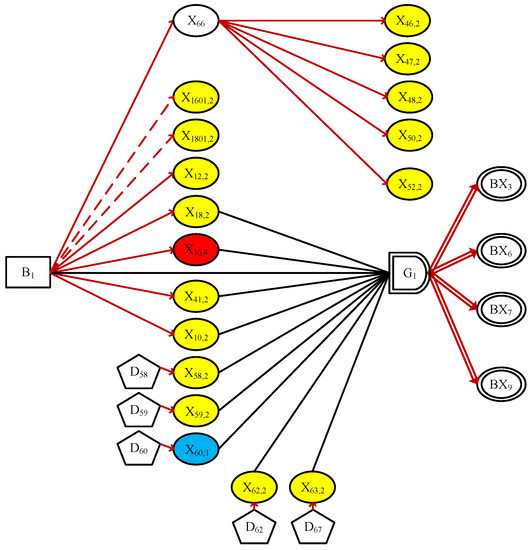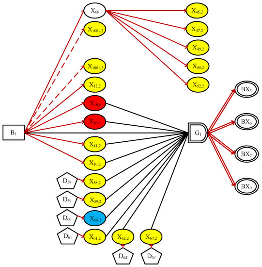 G-type variables are virtual logic gate variables. The state of G-type variable depends on the logical relationship among its parent variables (AND, OR, NOT, etc.). is a gate event variable indexed by i. In Figure A1, represents the logic gate event variable specifying the logic among and to , where the G-type variables are drawn as gates and the details of are specified in the (Logic Gate Specification i).