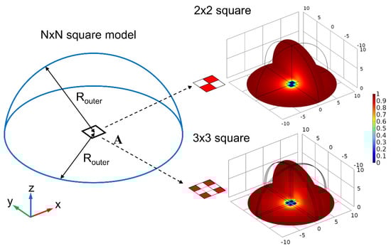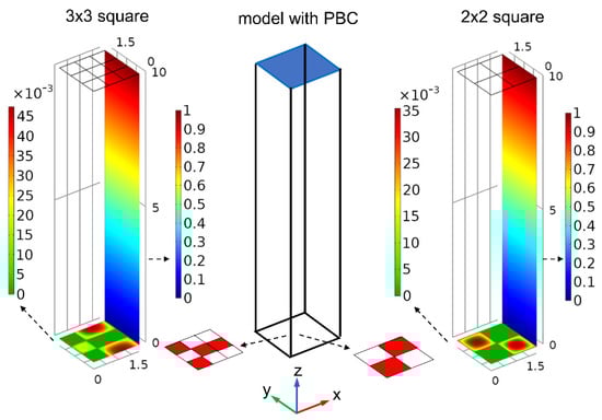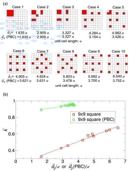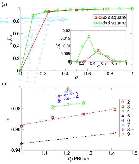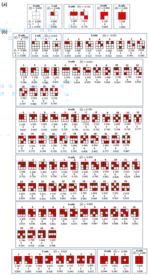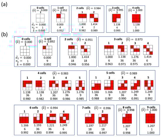 Figure 5b. Since the cases of the 2 × 2 square model are trivial, we present only the cases of the 3 × 3 square model. From the plot, we find a general trend that as