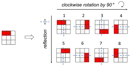 Figure 3. However, when the configuration has symmetries in the arrangement of patches, the number of configurations generated is reduced because some configurations are duplicated. Therefore, we consider only symmetrically representative configurations with the number of equivalent configurations