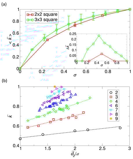 , the ensemble-averaged normalized rate constant for the 3 × 3 model is larger than that for the 2 × 2 model. This outcome is consistent with the observation in a spherical reactant that a smaller patch gives a larger rate constant [