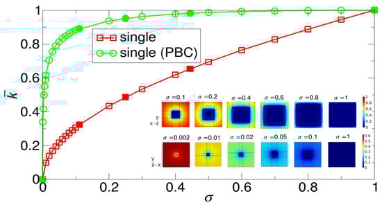 Figure 7a. These interesting properties with the PBCs were also found in the reaction systems of a spherical reactant with multiple reactive patches [