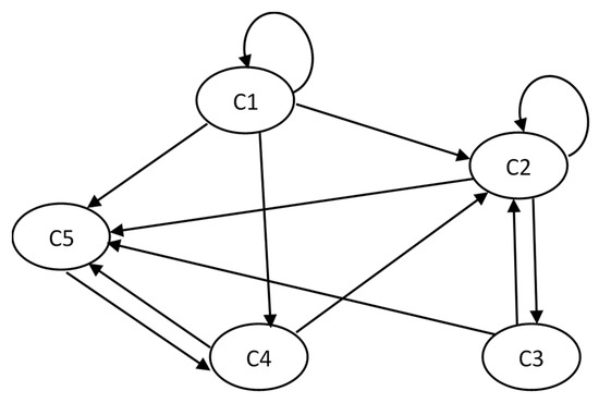 Let wij ∈ [−1, 1] be the degree of influence from the ith concept, Ci, to the jth concept, Cj, where the sign indicates the positive or negative influence and −1 denotes a full negative impact and 1 expresses a full positive impact. Then, the influence of concept, x, can be calculated by the following equation: