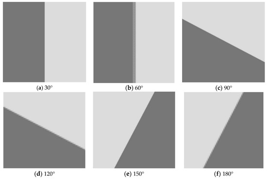 Among them, is the grey value of , and represent the gray values on both sides of the edge, is the location of the edge. In order to be used in digital images, the discrete gray moment is mainly introduced. In continuous images, A one-dimensional continuous gray moment’s definition is , Assuming that and are gray values of and whose percentage of pixels in total pixels n, and meet , then