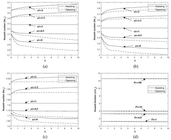 Figure 3d, it is found that, for a given Prandtl number, the heat transfer increases very slowly with the increasing value of buoyancy parameter