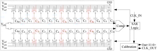 The architecture of 12-bit full differential successive approximation register analog-to-digital converters (SAR ADC).