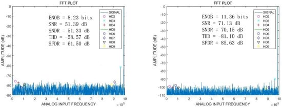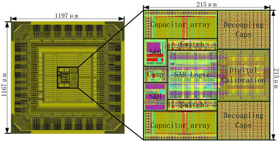 The performance comparison and summary of the prototype ADC display in Table 1 shows that previous research is all 12 bits SAR ADC. Our design has excellent advantages in SNDR, SFDR, ENOB, and power consumption.