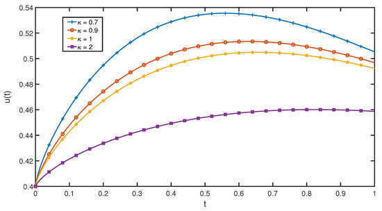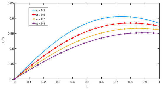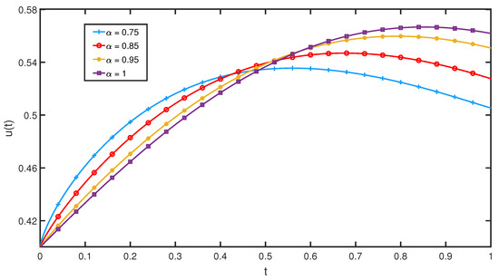 where is a prescribed non-dimensional parameter and is the scaled population of identical individuals at time t. The derivative in the fractional Volterra population growth model (5) is in the Caputo sense and is the Riemann–Liouville fractional integral operator of order