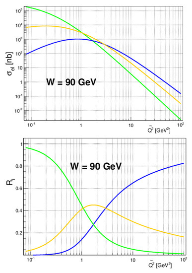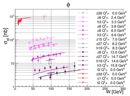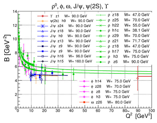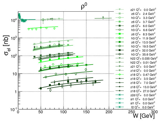 - Fazio, S.; Fiore, R.; Lavorini, A.; Jenkovszky, L.; Salii, A. Reggeometry of Deeply Virtual Compton Scattering (DVCS) and Exclusive Vector Veson Production (VMP) at HERA. Acta Phys. Pol. B 2013, 44, 1333. [Google Scholar] [CrossRef]