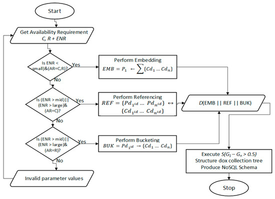 | Input: E = entities. ENR = Estimated number of records. EMB = Embedding, REF = Referencing, BUK = Bucketing. CRUD Operations Cr (C, R, U, D). Output: NoSQL Schema. Definitions: ≈ approximation, ≫ much less than. | |