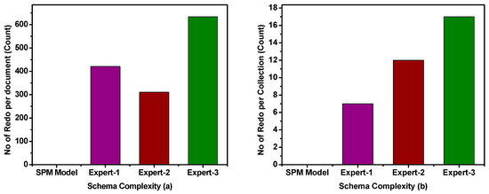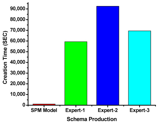 On the other hand, the schema production process was also assessed between the DSP model and formal methods. The results of this experiment show that the DSP model takes only around 1120 s to produce the desired schema, while it takes days to produce the same schema using formal methods. In addition to schema production time, an experiment was also conducted to assess the schema complexities in terms of reusability, extendibility, understandability, etc. It is observed that the DSP-based schema is more reusable, extendible, and understandable. It is also able to incorporate, on average, all the user and system requirements. Furthermore, the DSP model does not repeat or revisit any document or collection after its completion, while other competing experts had to revisit the modeled documents around 600 times on average for the given case study. Collections are usually revisited to correct erroneous implementations, improve design performance, and improve synergy between the collaborative collections. These and many other possibilities are experimentally calculated, classified, and integrated into the DSP model, which eliminates re-visitations of documents after the schema production.