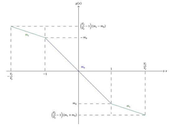 In order to analyze the behavior of the dynamical system (6), we need to find all its equilibrium points. Note that Figure 6 illustrates how the three-segment piecewise function depends on the range of x. The investigation of equilibrium points is thus divided into three cases in Section 3.1–Section 3.3. We then prove that each equilibrium point is of type saddle focus in Section 3.4. In Section 3.5, we describe how to find an initial point to localize a hidden attractor of the system.