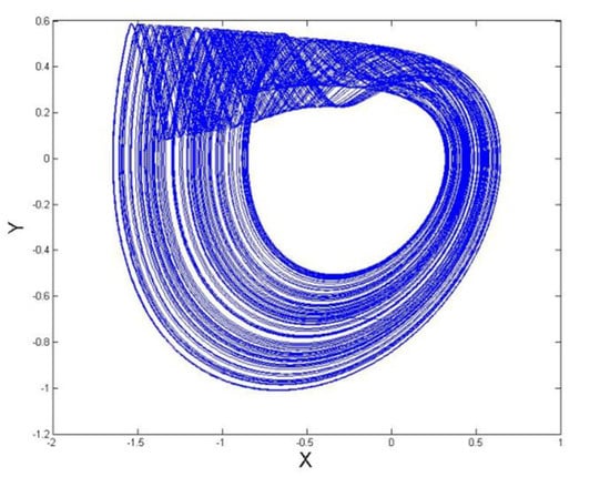 - Rössler, O.E. An equation for hyperchaos. Phys. Lett. A 1979, 71, 155–157. [Google Scholar] [CrossRef]