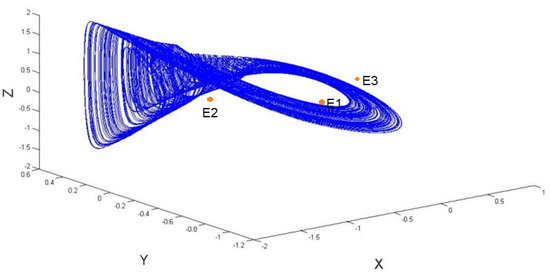 In order to find a hidden attractor of the system, we will find a suitable initial point so that our system will have chaos. First, let us write the system (6) into a first-order vector differential equation