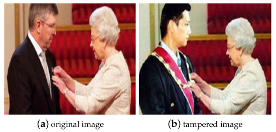 Nowadays, digital multimedia forensics has become an emerging research field. It has received considerable attention aiming at determining the origin and potential authenticity of digital media. For instance, image authenticity is important in many social areas, such as: in the medical field, physicians make critical decisions based on digital images; in law-reinforcement agencies and in courtrooms, the trustworthiness of photographs has an essential role where they could be used as evidence. In today’s digital age, the fast development of powerful and low-cost editing tools facilitate the manipulation of digital media such as adding or removing parts and objects from images and videos leaving little or no sign of manipulation. Subsequently, this manipulated media will spread quickly and can have serious consequences, on both a national and an international scale. Moreover, it is too difficult to guarantee their integrity and authenticity, as shown in Figure 1, which represents an instance of tampering. With the rapid advances of high-resolution digital cameras and the availability of sophisticated editing software, such as Adobe Photoshop, Pixar and Corel PaintShop, one can easily modify the content of photos without leaving any obvious perceptual sign of manipulation. Unfortunately, they are blurring the line between real and faked multimedia content. The improper use of such editing tools allowing the diffusion of fake and misrepresented medias on social networks is becoming a grave rising problem since they have put the integrity of digital media further at stake. Indeed, counterfeiters repeatedly try to exploit these tools to hide and conceal images and videos and then use them to misinterpret information which can spread very fast and can have disastrous consequences, potentially at a national and international scale. They can also lead to fast-growing issues as decreasing the trustworthiness on many real applications. The big challenge is that it becomes very difficult for a viewer to judge the authenticity of a given image or video. The manipulation of digital media generally known as digital tampering is a horror to individuals (faked sequence of videos of celebrities), to societies (provocative faked images aiming certain ethnicity or religion), to journalism (reporters’ post-manipulation of images), to insurance companies and to scientific journals. Tampering becomes a worry for governments, public and private enterprises and for individuals’ private lives. Hence, the world is immersed in a serious challenge to address immediately the problem of spreading fraudulent photos and videos. An example of image tampering is depicted in Figure 2 where a Malaysian politician (Jeffrey Wong Su) is facing eviction from his party after faking snaps showing he was seen being knighted by the Queen of England in July 2010.