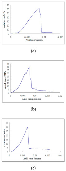 Stress–strain curves of three types of sandstone. (a) The stress-strain curve of the first kind of sandstone; (b) The stress–strain curve of the second kind of sandstone; (c) The stress–strain curve of the third kind of sandstone.