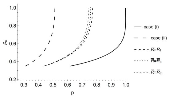 The radius of the elastic/plastic boundary at the end of loading is an essential parameter for autofrettage [35]. Even though the system of loading in the case of hydraulic autofrettage is different from that considered in the present paper, it is of interest to understand the dependence of this radius on the yield criterion adopted. The variation of with p found with the use of Equations (16) and (19) is depicted in Figure 2. It is seen from this figure that the effect of the yield criterion on is significant and increases as p increases. Thus, the difference between the plastic region’s predicted sizes found using the actual orthotropic yield criterion and the assumption of normal anisotropy becomes larger as the pressure increases.