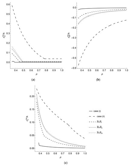 The effect of the yield criterion on the distribution of the residual strains found from Equation (52) is shown in Figure 4. It is seen from Figure 3 and Figure 4 that the residual strains are more strongly affected than the strains at the end of loading. In particular, there is a significant deviation of all residual strains for Case (ii) from four other cases. However, the difference in the residual axial strain for the different yield criteria is negligible in the common elastic region (Figure 4a).