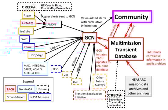 - Smale, A.; Racusin, J.; Barthelmy, S.; McGlynn, T.; Cenko, B.; Schnittman, J.; Perkins, J.; Baker, J.; Singer, L.; Sheets, T.; et al. Time-domain Astronomy Coordination Hub (TACH). Am. Astron. Soc. Meet. Abstr. 2020, 52, 107.15. [Google Scholar]