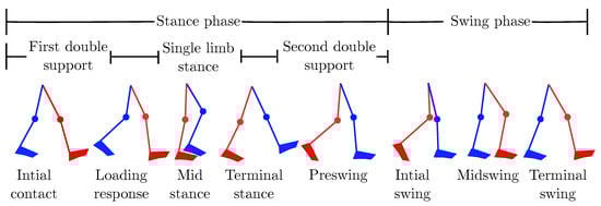 Walking is one of the basic forms of human movement. This complex process consists of consequent steps, see Figure 4 and article by Kibushi et al. [18]. A step is defined as a movement of the leg between the time points when the foot leaves the surface and touches it again. During this motion, one leg does not move and it can be called static. In the first part of the step, the foot of the dynamic leg leaves the surface and the static leg holds the full body weight. Next, the heel of the dynamic leg touches the surface in order to prevent falling, followed by the toes ensuring the overall balance. In the following step, the roles of legs switch. Even this simplest explanation of walking shows us possible boundary conditions, such as the force from the heel (when the dynamic leg touches the surface) and forces from the toe (when the static leg holds the full weight). Other types of movement (such as fast walk, running, climbing, etc.) depend on the frequency, speed of the process, and angle of the surface. The TOP of the lower part of the BST takes into account two main load cases that occur during walking, i.e., the heel and toe touches. These two cases are the most critical, since every other mentioned case could be viewed as their combination. One could argue that standing still could be also considered to be an important load state; it is, however, already included in the previous cases (i.e., the load while standing is much lower than that present during movement). The forces acting during these two cases cause the bending moment and bending stress in the BST, which has to automatically sustain the stationary body weight. Additionally, during standing, forces would be split evenly between both legs. It should be noted that, in this paper, we assume that walking on an infinite plane without tilting.