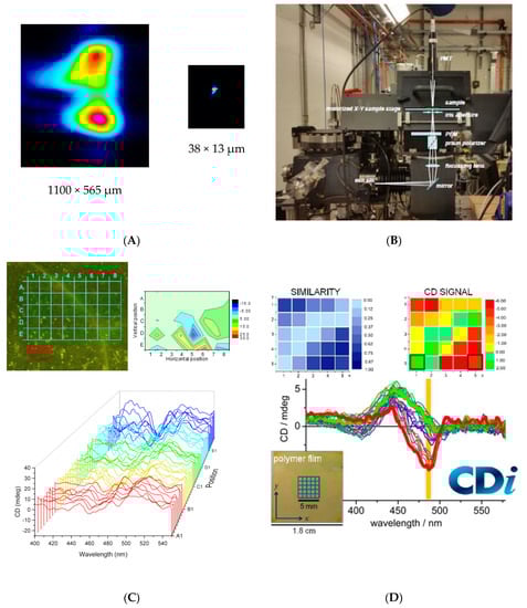 - Zinna, F.; Resta, C.; Gorecki, M.; Pescitelli, G.; di Bari, L.; Javorfi, T.; Hussain, R.; Siligardi, G. Circular Dichroism Imaging: Mapping the Local Supramolecular Order in Thin Films of Chiral Functional Polymers. Macromolecules 2017, 50, 2054–2060. [Google Scholar] [CrossRef]