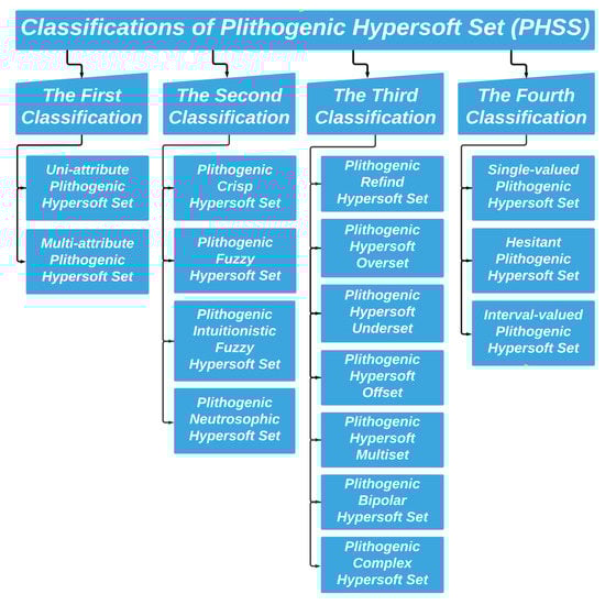 Flowchart of four classifications of plithogenic hypersoft sets (PHSS).