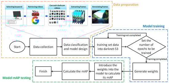 As the name suggests, the aim of this step is to prepare the data for model learning and training. To facilitate future studies, three smaller components are further defined: (1) A training set consisting of dashcam images; (2) A training set consisting of single high-resolution images of accidents; and (3) A test set used for model testing.