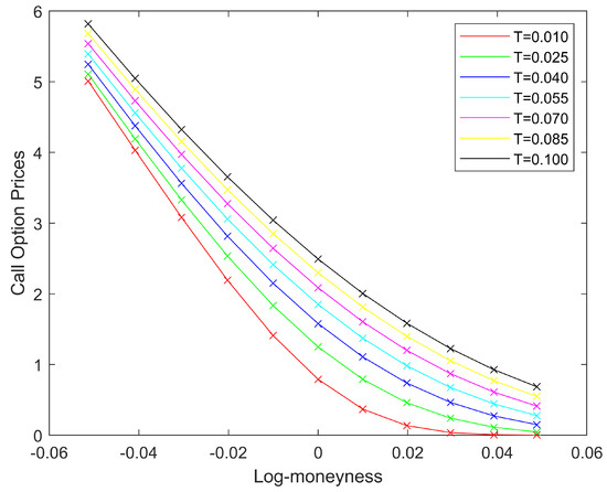 Remark 5. Lemma 6 satisfies the result of from the work of Alos, Elisa and De Santiago, Rafael and Vives, Josep [19]. Furthermore, when the option is at-the-money, we can obtain a rough approximation of implied volatility in terms of T as contrary to Remark 3 which provides constant term when the option is at-the-money. An integration of the result in Equation (66) with respect to T near gives us the following approximation: 4. Numerical Experiments