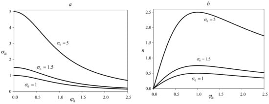 The corresponding stationary values of the concentration of relaxation areas and loads are calculated by substituting (23) into the Equations (18) and (19).