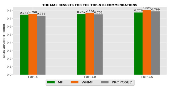 The MAE results for the top-N recommendations.