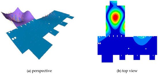 In the paper, a calculation was made of the eigenfrequencies (resonance frequencies) and of the eigenmodes of vibration of the concrete slab. In Figure 13, Figure 14, Figure 15, Figure 16, Figure 17, Figure 18, Figure 19, Figure 20, Figure 21, and Figure 22, the first 10 modes of vibration are represented. Modes 10–20 are represented in Appendix C (Figure A5, Figure A6, Figure A7, Figure A8, Figure A9, Figure A10, Figure A11, Figure A12, Figure A13, Figure A14 and Figure A15).