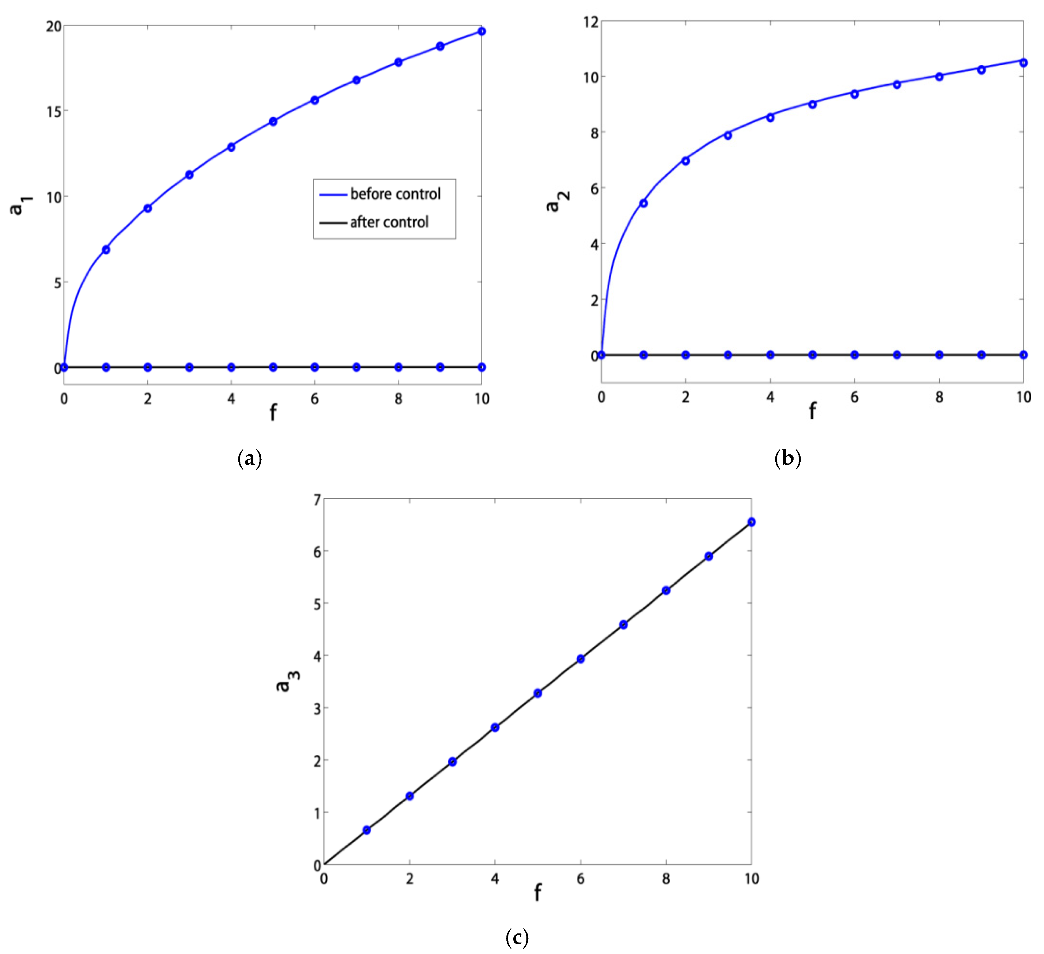 - Before control, the blade suffered from severe vibrations and jumps due to the existence of bifurcation points. After control, the blade exhibited stable solutions without jumps due to the absence of bifurcation points;