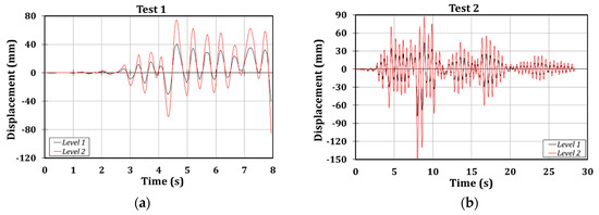 Displacements histories. (a) Test 1; and (b) Test 2.