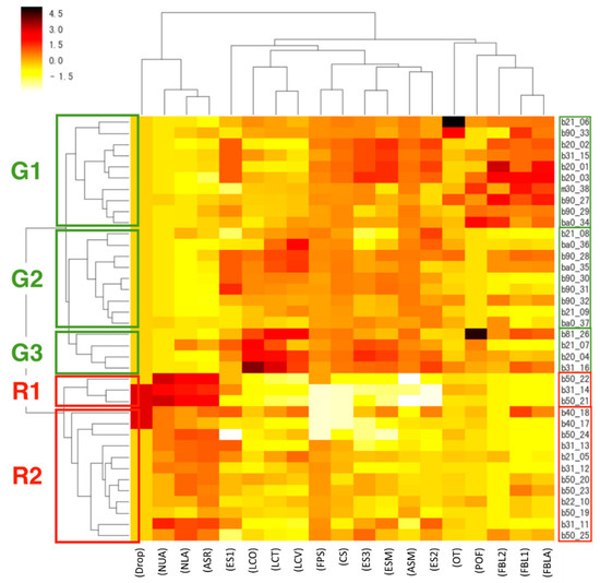 Fine grouping of the hierarchical group heat map.