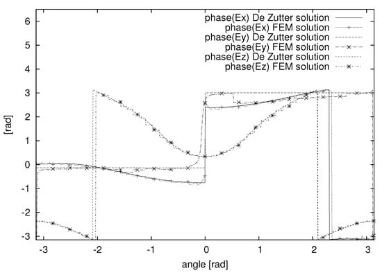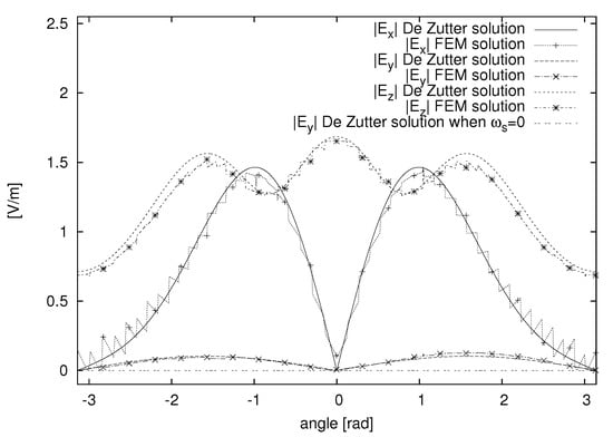 - Brignone, M.; Raffetto, M. Well posedness and finite element approximability of two-dimensional time-harmonic electromagnetic problems involving non-conducting moving objects with stationary boundaries. ESAIM Math. Model. Numer. Anal. 2015, 49, 1157–1192. [Google Scholar] [CrossRef]