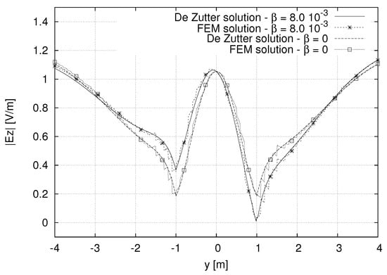 - Kalarickel Ramakrishnan, P.; Raffetto, M. Accuracy of finite element approximations for two-dimensional time-harmonic electromagnetic boundary value problems involving non-conducting moving objects with stationary boundaries. ACES J. 2018, 33, 585–596. [Google Scholar]
