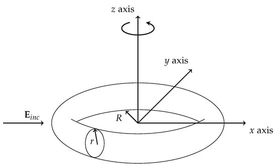 The presence of rotating objects in electromagnetic problems is of interest in several applications, ranging from the detection of helicopters to the tachometry of celestial bodies [,]. Unfortunately, as an immediate consequence of the presence of materials in motion, all these electromagnetic problems are difficult to solve. This is a consequence of the fact that all moving media are perceived as bianisotropic [,].