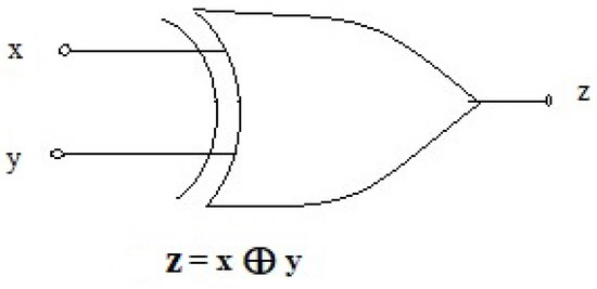It is well known that symmetric difference as well as XOR-operation are both symmetric. The graphical representation of XOR of x and y for truth values is given by the following Figure 2.