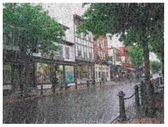 The algorithm in this paper is used to process the noisy image. Figure 3 is the rain image affected by the mixture of salt and pepper noise with standard deviation of 0.1 and Gaussian white noise with standard deviation of 20. Figure 4 is the denoised image processed by the algorithm in this paper.