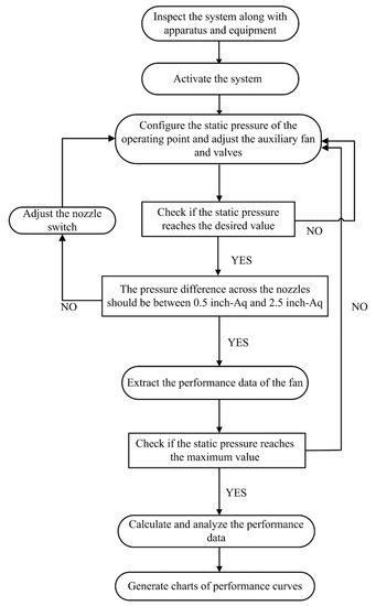 (c) Increase the pressure sequentially; the nozzle switch, the shutter of the auxiliary fan, and the inverter must be adjusted during each of the changes. After the system turns stable, then acquire a group of data by the data acquisition system [24,25].