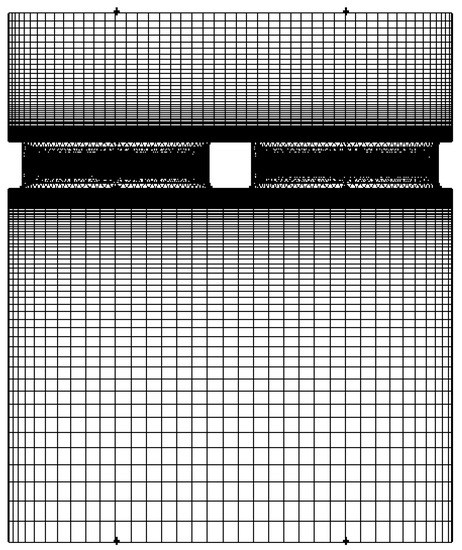 As shown in Figure 7, the total number of cells is 1,957,013 for the dual impellers and 2,659,498 for the entire system, including the inlet and the outlet. As the mesh for the inlet and the outlet is used for the analysis of the upstream and downstream flow fields and for the boundary conditions, more cells are required at the locations that are closer to the dual impellers in order to simulate the complicated flow field locally. For the domain that is upstream to the dual impellers, the size of a cell is the largest at the inlet. Similarly, the size of a cell is the largest at the outlet for the domain that is downstream to the impellers. This is because no complex geometry exists at either the inlet or the outlet.