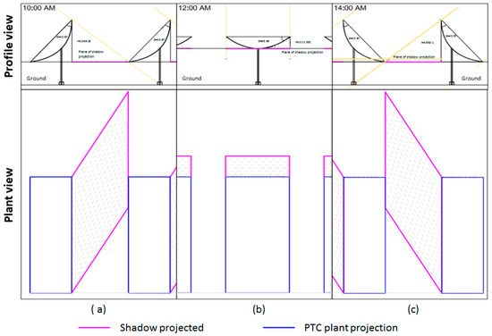 Figure 4 shows the shadow geometry of the first PTC line (PTC 1) over the second PTC line (PTC 2 h).