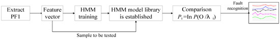 The hidden Markov model (HMM) is a statistical analysis model used to describe a Markov process with hidden unknown parameters. The HMM model has strong feature classification capabilities based on these two stochastic processes. It is especially suitable for statistical analysis of nonstationary, repetitively poor dynamic signals. According to the pattern matching principle, the HMM model trains a reliable model with a small number of samples and finds the pattern most similar to the detection signal as the recognition result [28]. The HMM model has been well applied in the fields of speech recognition, traffic monitoring system, and medical image recognition [29,30,31]. When compared with neural networks, it retains more statistical information of training data and has a higher recognition rate and robustness [32].