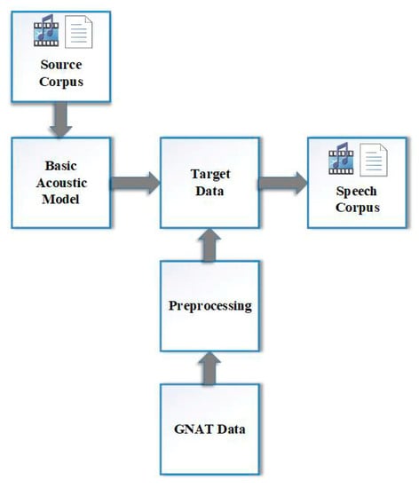 The GNAT data module contained two different files. These files were GNAT session video recordings and session reports. The GNAT manually matched session reports and related videos, facilitating the process. In the pre-processing module, audio files were first extracted from video images. The separated audio files were 15–25 s. These audio files were used as input to the previously trained ASR system. The obtained texts from the ASR system output were investigated in the GNAT reports and the related texts (the original transcriptions) were found. A total of 250 h of speech data were obtained by the transfer learning method.