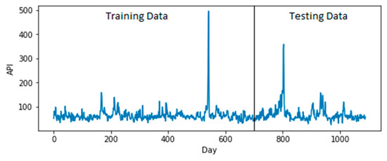 In this section, we will provide a result of the proposed model using the daily API data, whose plots for training data and testing data are given in Figure 4, respectively.